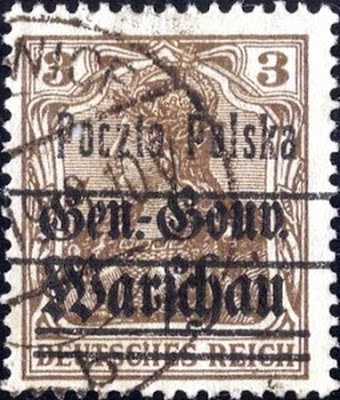 "Germania" przedrukowane Gen. Gouv. Warschau przedrukowane tekstem;